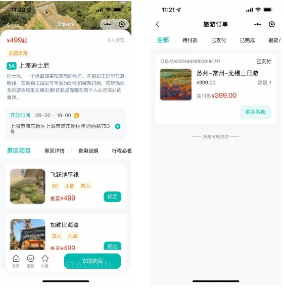 2、景点:景点机构可以发布景点项目,用户在线购买项目(无需选择日期),生成订单和核销码