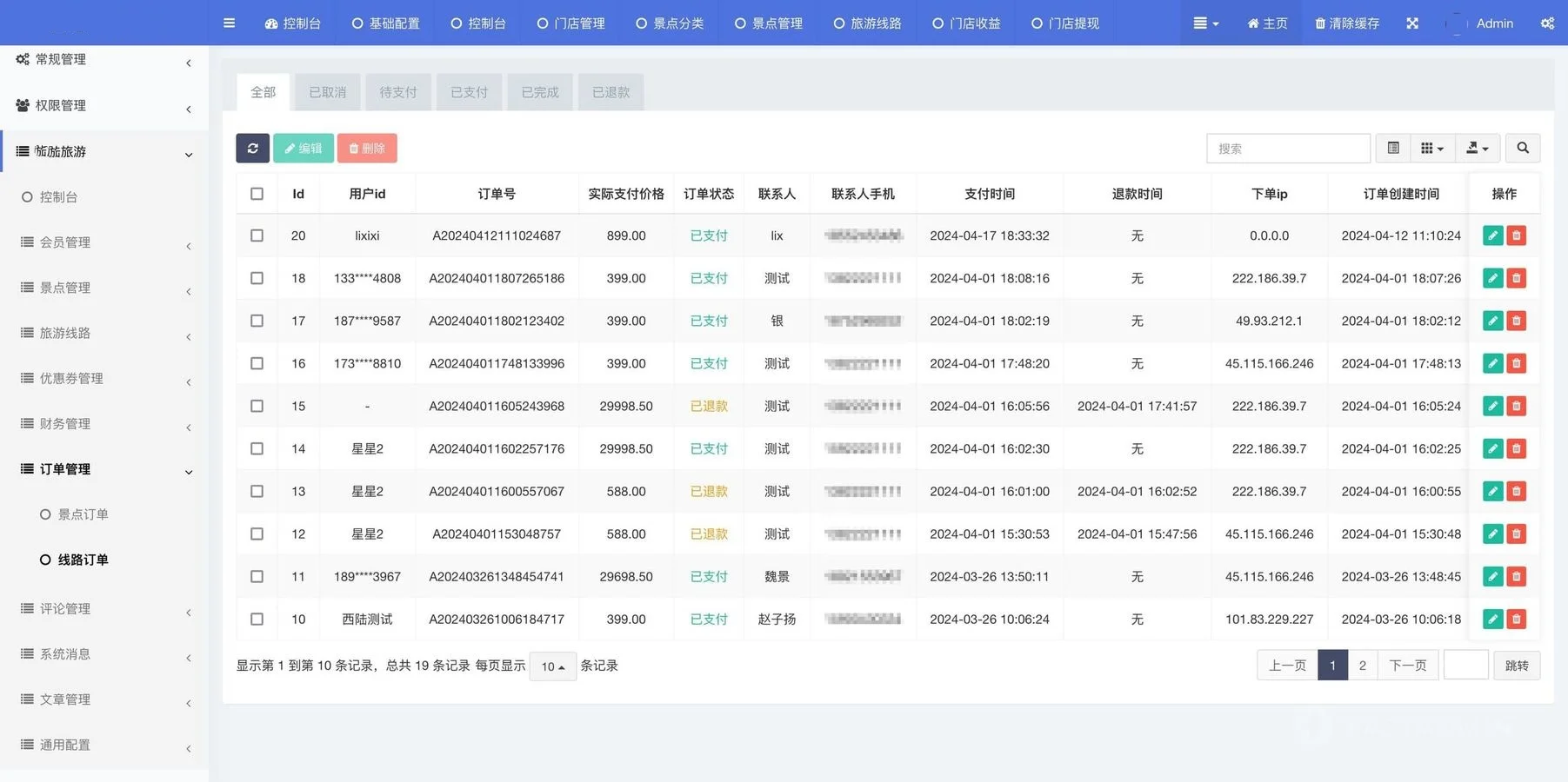 2、项目管理:景点项目或旅游线路管理发布、管理
