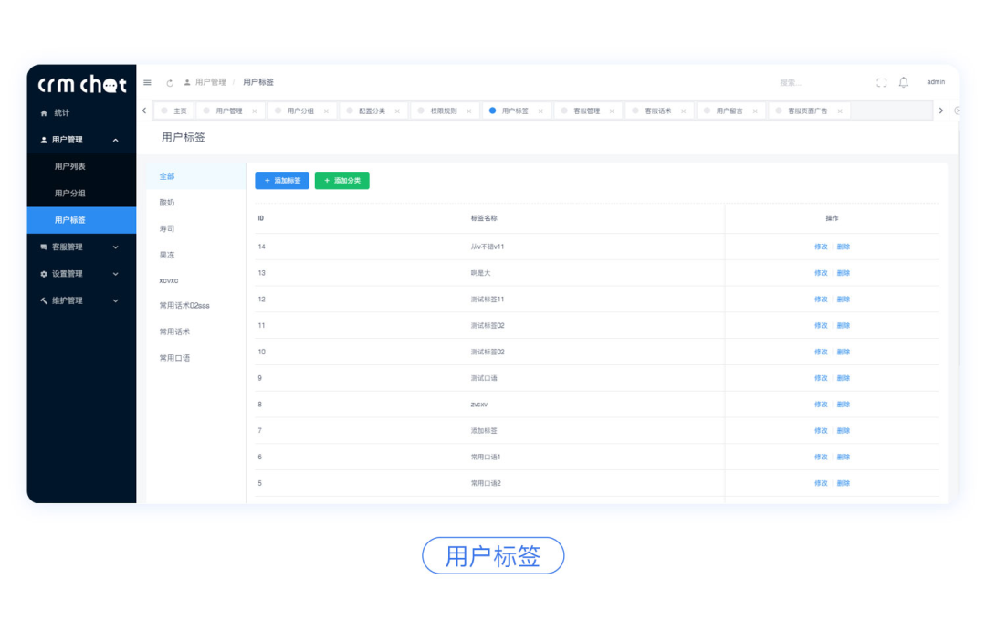 用户管理:支持用户分组、标签管理、备注添加等功能。 -