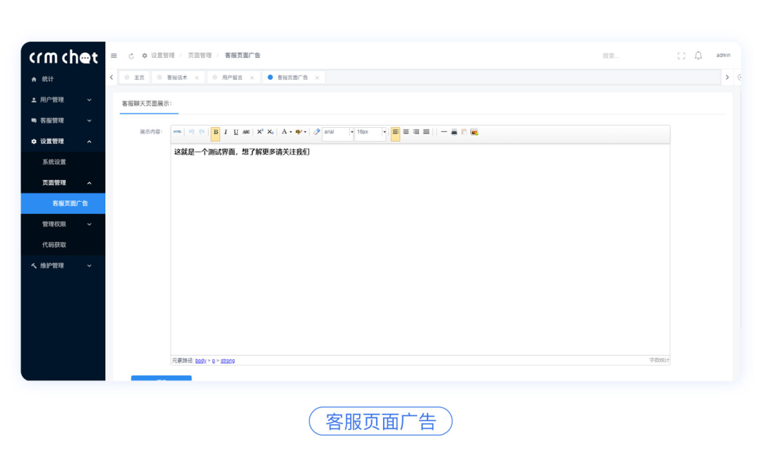 CRMChat 是一款采用 Swoole4 + ThinkPHP 6.0 (TP6) + Redis + Vue + MySQL 开发的独立高性能客服系统。该系统支持多端接入,包括 PC 端、移动端、小程序等,为商家提供全方位的客户管理和咨询服务解决方案。本系统遵循最开放的木兰协议(MIT License),可以随意使用、修改和分发。