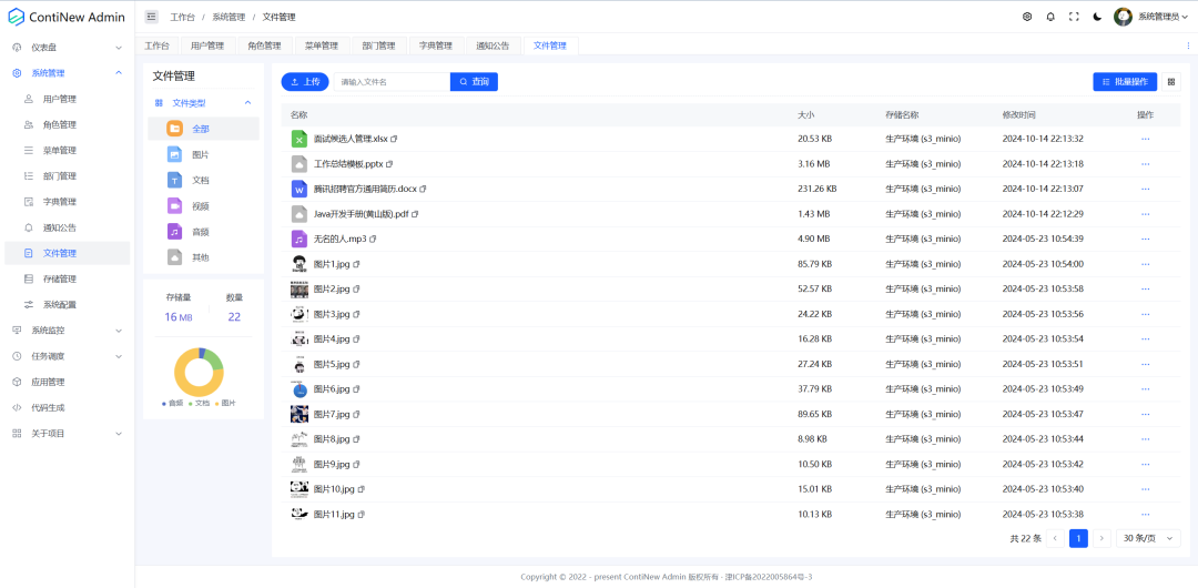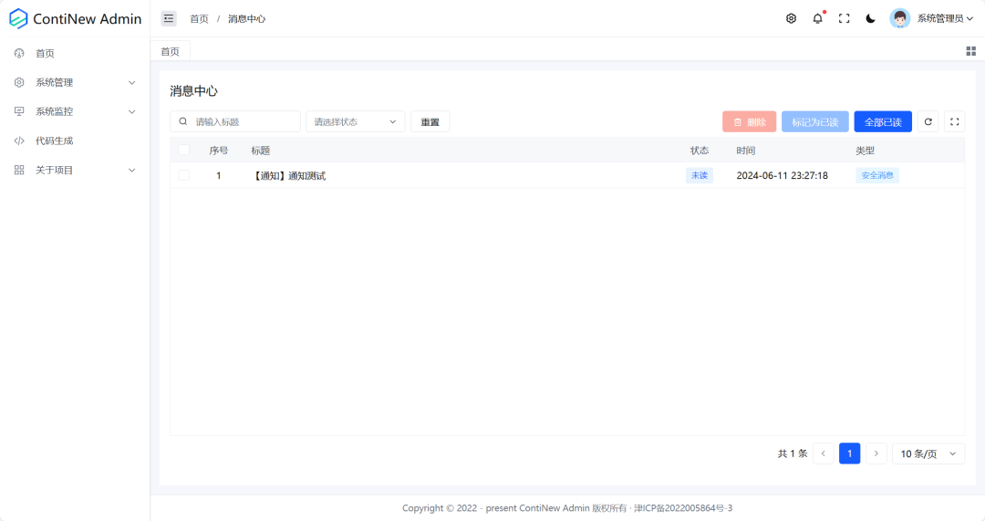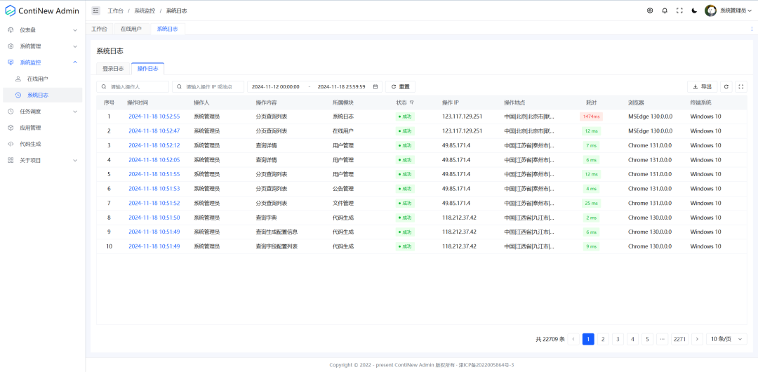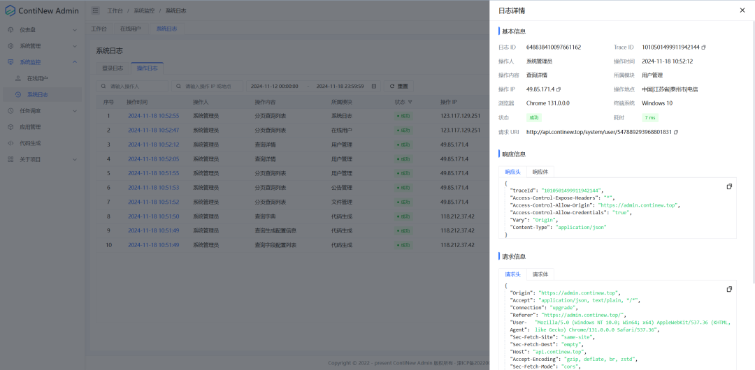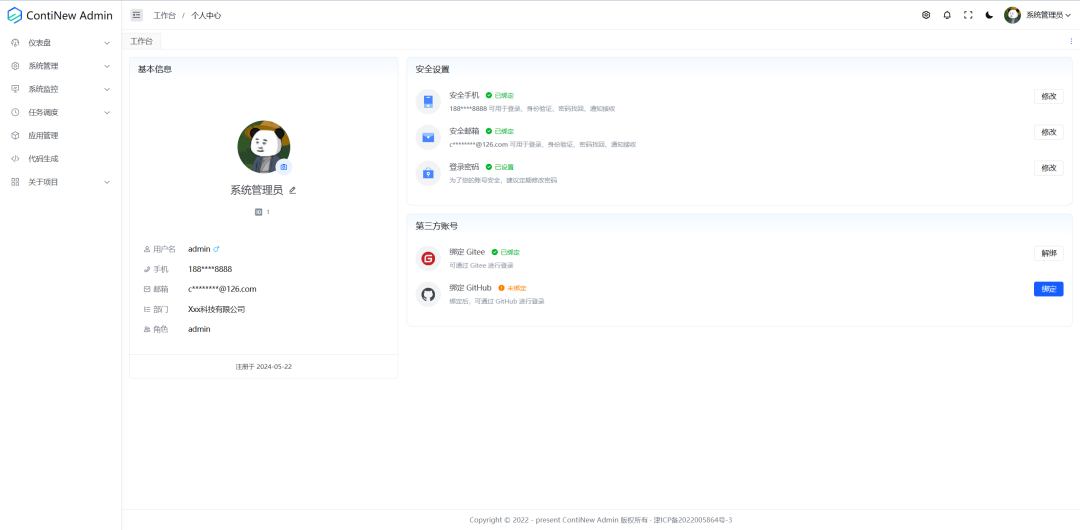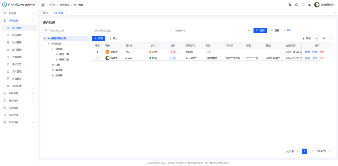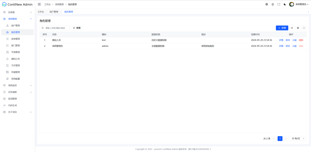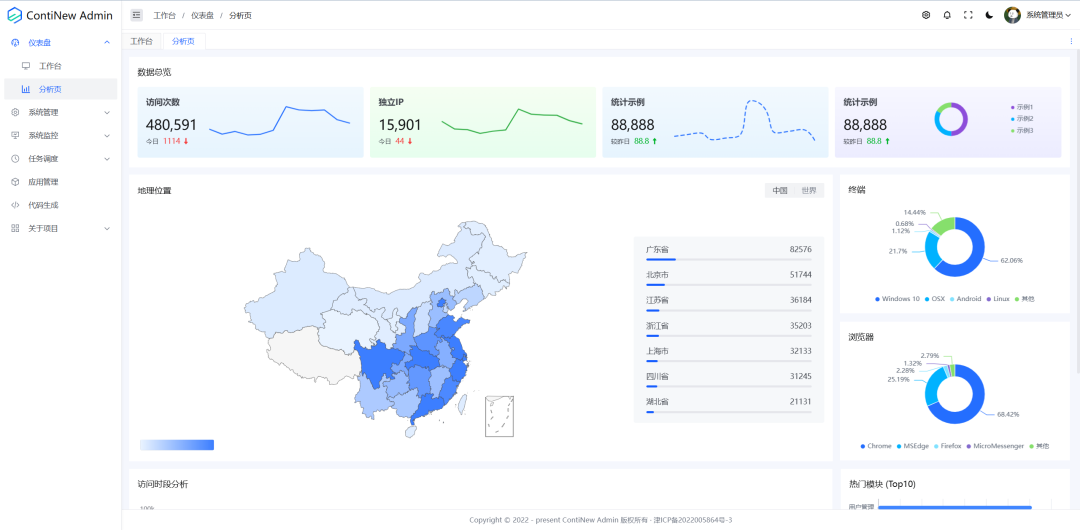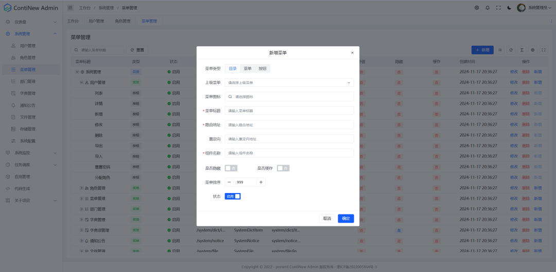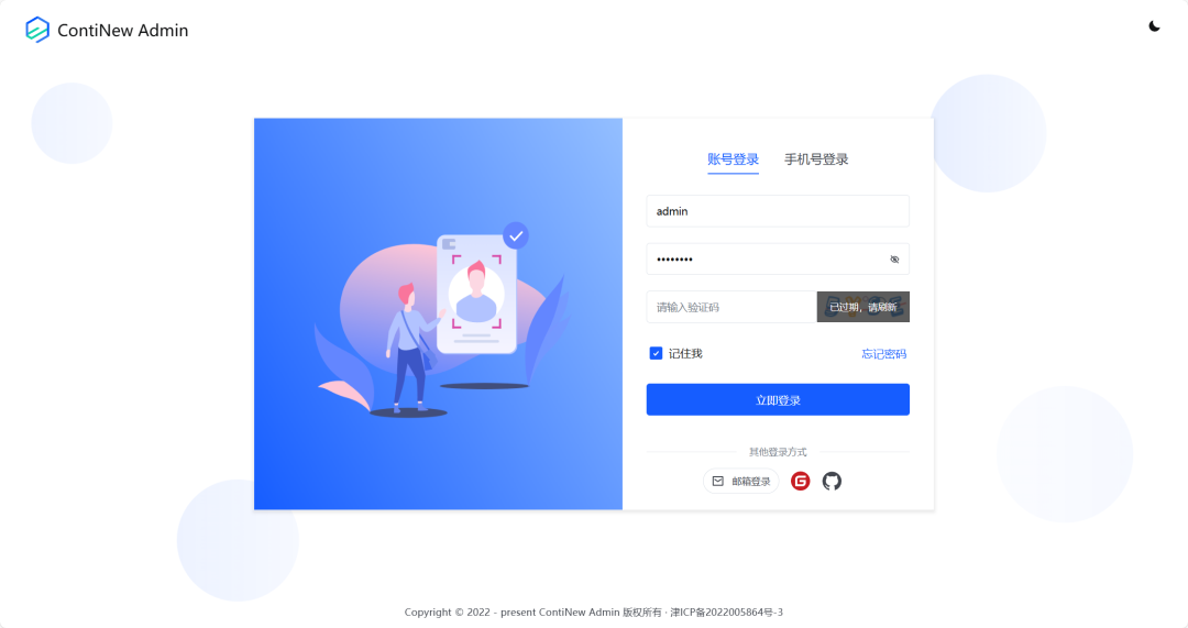 Continew Admin 是一个基于现代前端技术栈构建的开箱即用型后台管理系统,提供企业级管理界面解决方案。该框架页面现代美观,且专注设计与代码细节的 高质量多租户中后台 管理系统框架。开箱即用,持续迭代优化,持续提供舒适的开发体验。