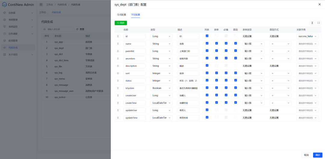 代码生成器:通过数据库表结构自动生成前后端代码 -