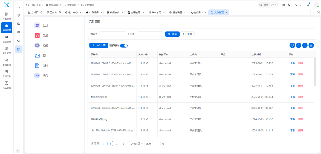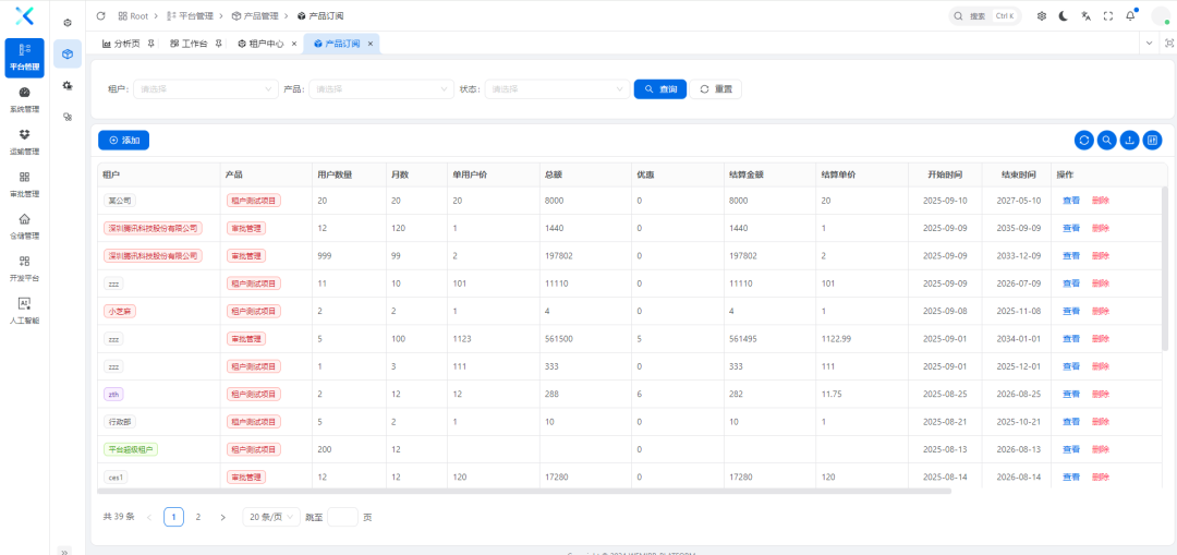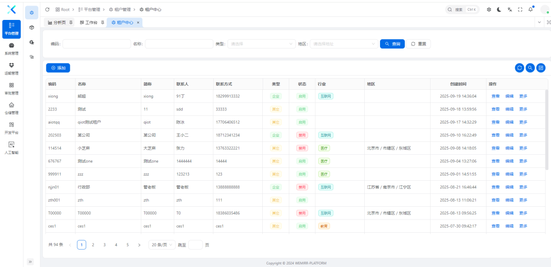 租户管理:支持多租户功能,每个租户拥有独立的数据空间和配置。 -