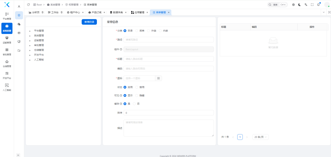 插拔组件:除去必要工程,可选组件均在wemirr-platform-plugin中按需使用,提高系统灵活性。