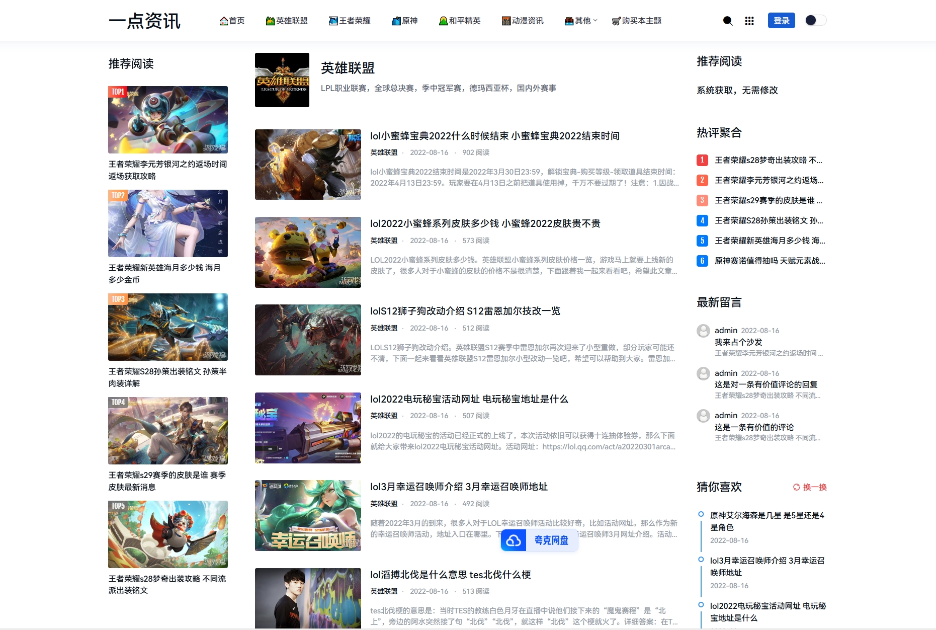 - ZBlog游戏攻略新闻资讯主题模板YK一点资讯 利于SEO排名网站源码 2025-09-29