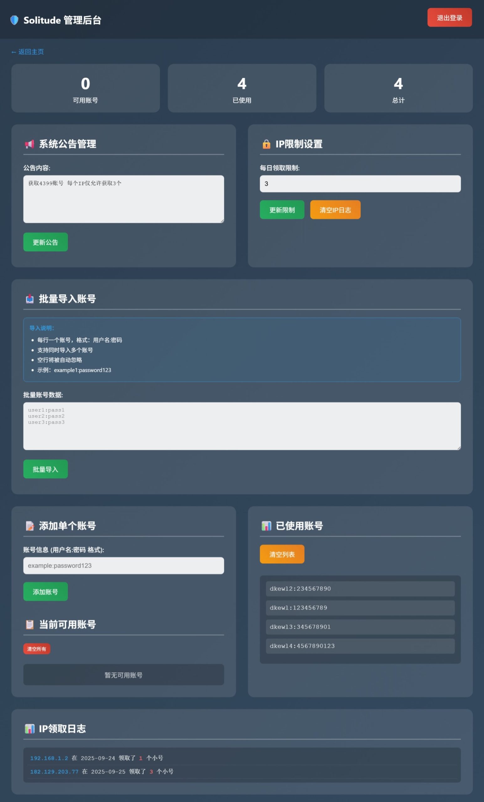 - 小号分发 卡密分发系统网站源码 轻量化 2025-09-29