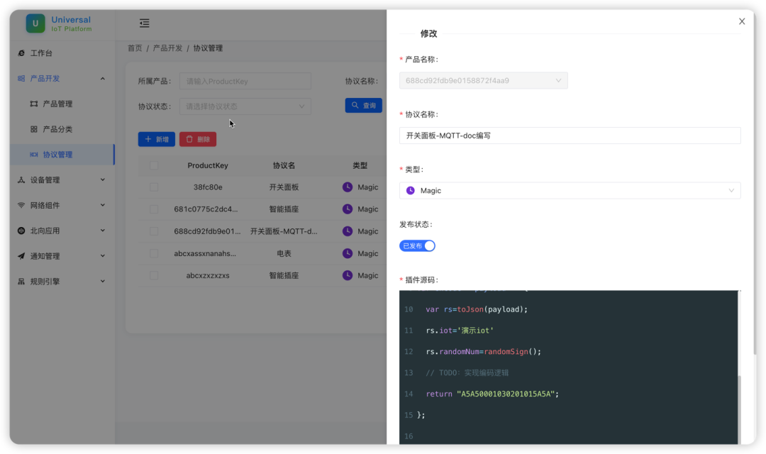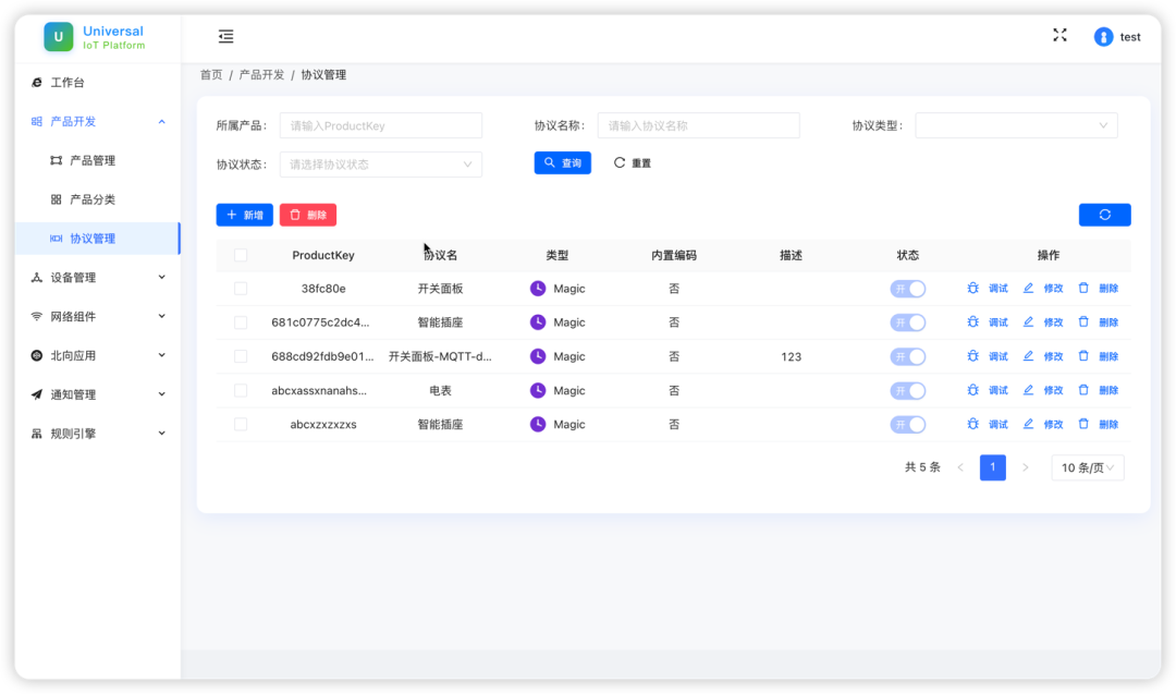 协议管理:云调试环境、插件化架构、实时协议开发、统一管理平台。 -