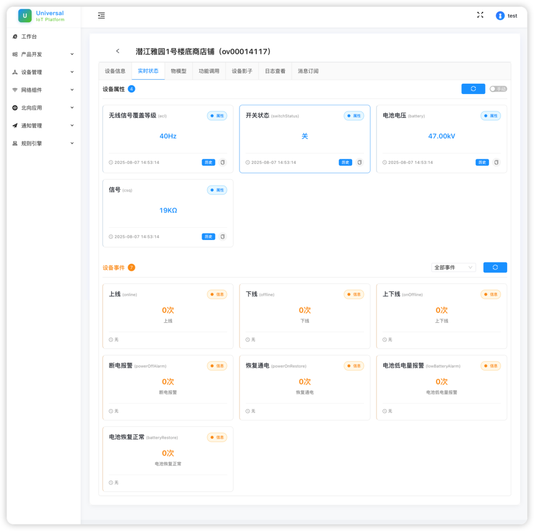 设备管理:设备详情监控、在线指令下发、设备影子、消息订阅、日志查看。 -