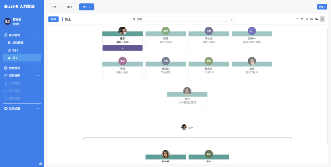 iBizEHR 是一个 基于 iBizEngine 的模块化 EHR 平台 —— 以组织与人员为核心,通过合并挂载招聘、假勤、薪资等轻应用模块,既具备灵活扩展性,又能保持系统长期的演进能力。