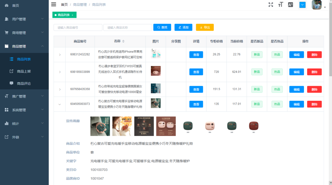 商品管理:上下架商品,编辑商品信息,管理库存。 -