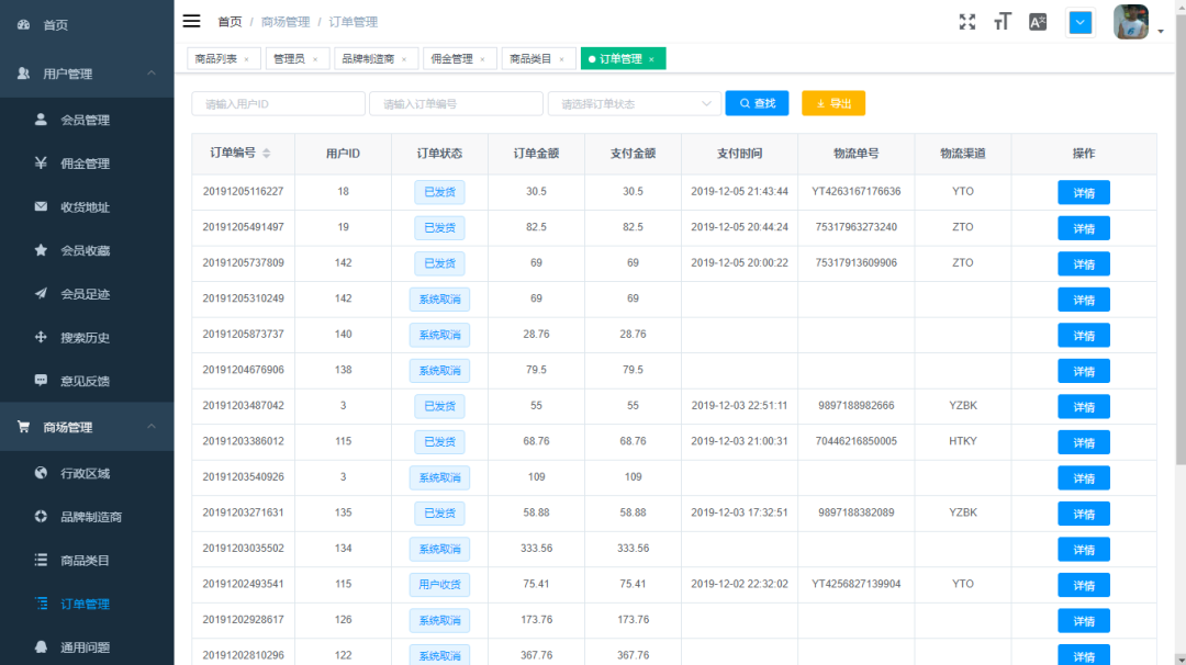 订单管理:查看订单详情,处理退款,导出订单数据。 -