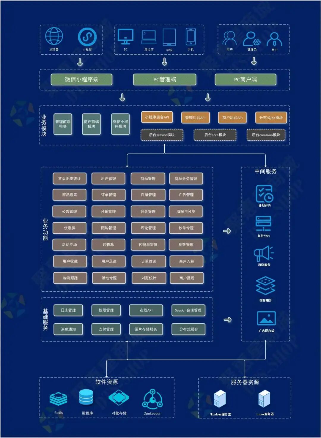 聚惠星商城 DTS-SHOP 是一个基于微信小程序、SpringBoot 和 Vue 技术构建的商城平台,支持单店铺及多店铺入驻。项目包含微信小程序端和管理后台,采用 Java 作为后台开发语言,已实现功能闭环,并达到商用标准。