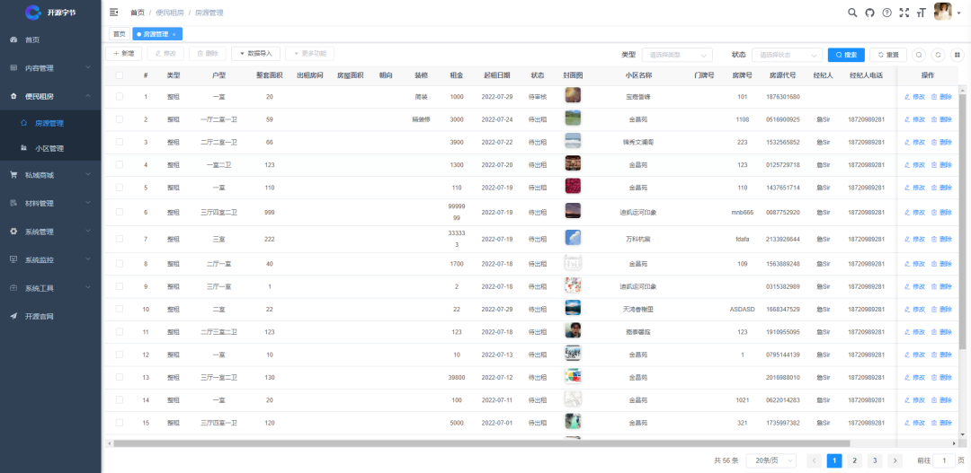 用户管理:管理用户信息,包括房东、租客、中介等。 -