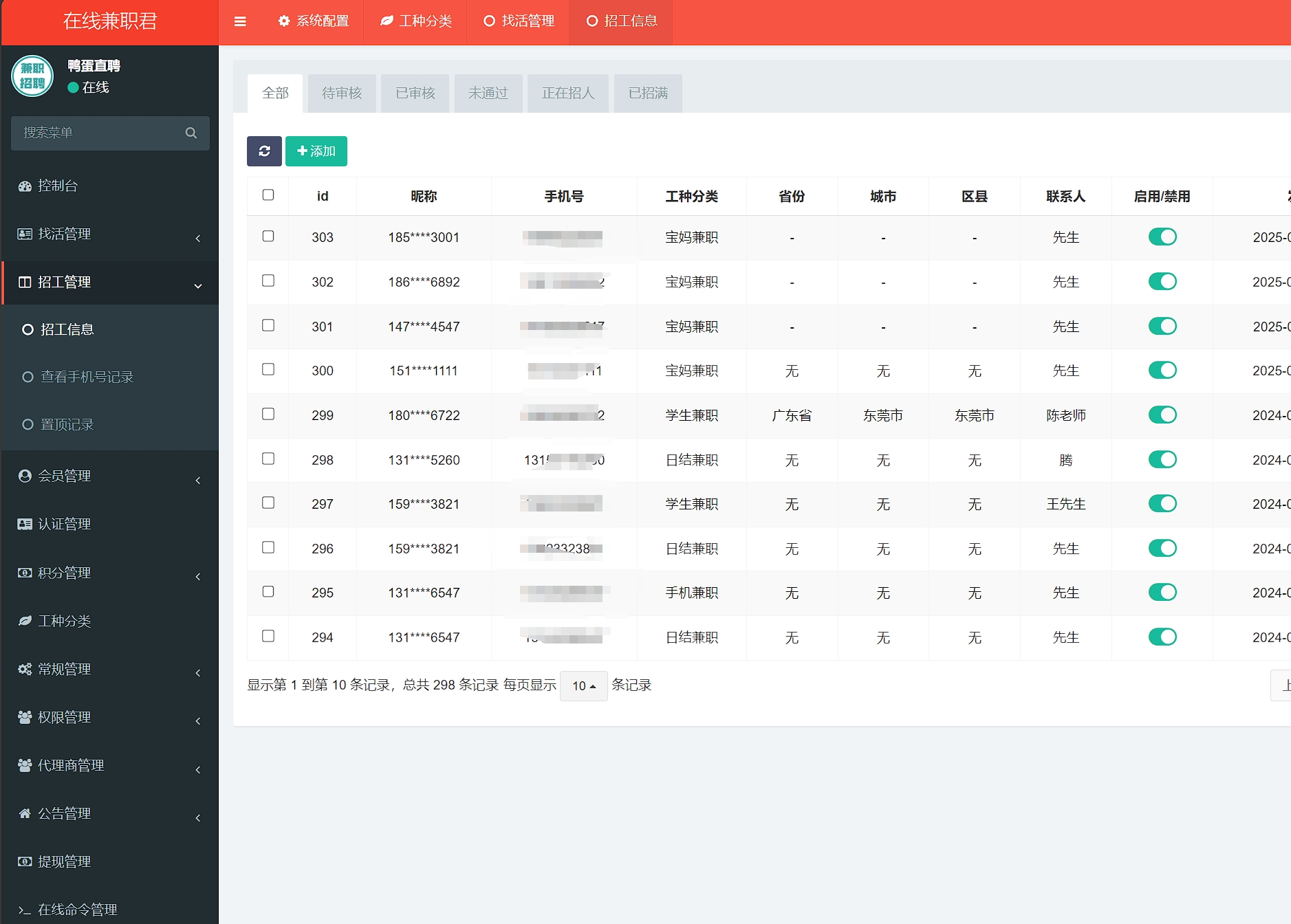 独立版:仿鱼泡找工人,灵活用工、招工招聘系统,支持微信小程序、安卓APP、苹果APP、H5,基于UniAPP+uView前端框架开发,支持自助发帖,通过手机账号,可以小程序端和H5端、APP端账号数据互通。