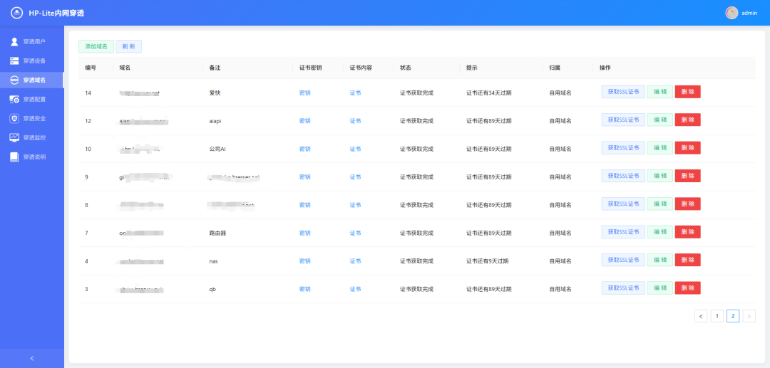域名代理:支持域名代理,方便用户通过域名访问内网服务。 -