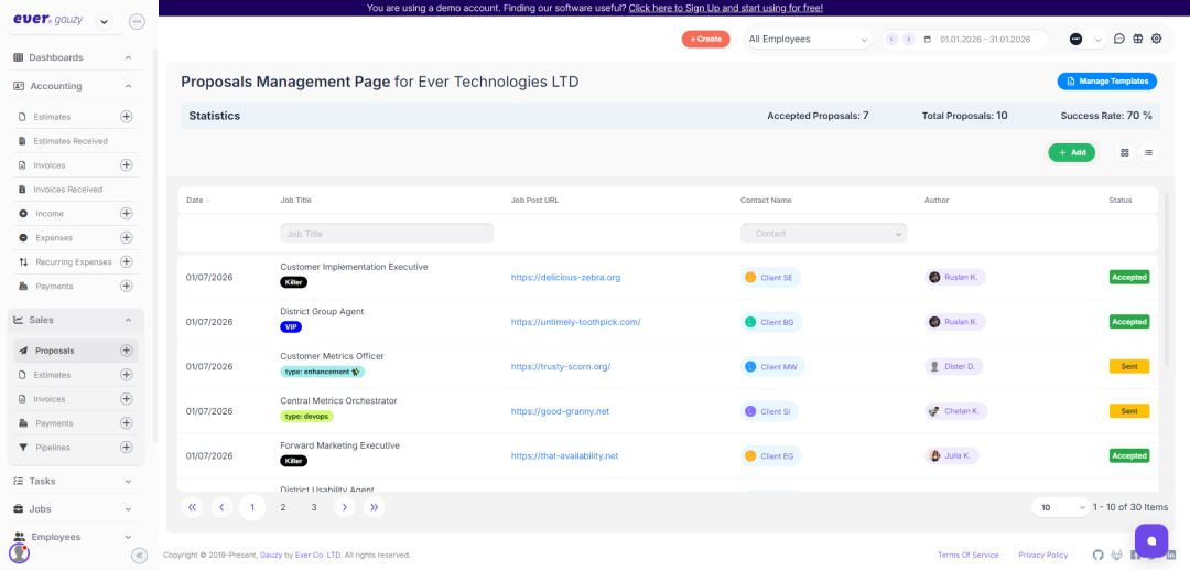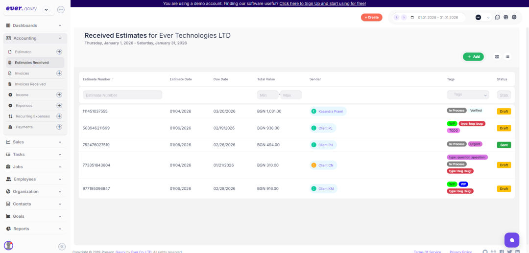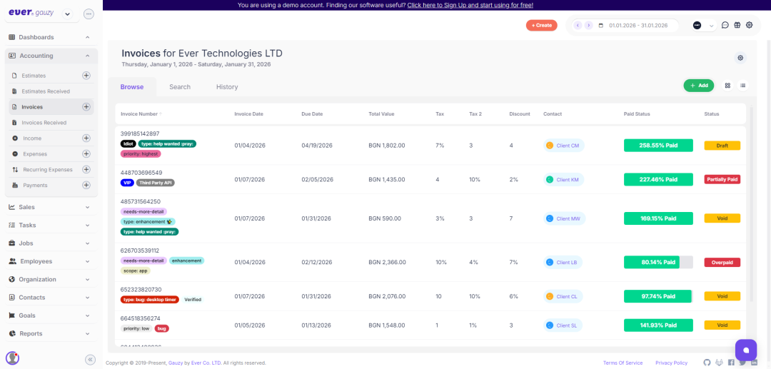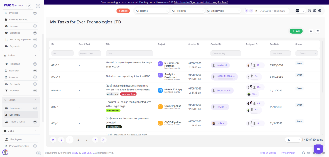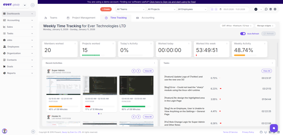 Ever Gauzy Platform 是一个开放的业务管理平台,专为协作、按需经济和共享经济设计。它集成了企业资源规划(ERP)、客户关系管理(CRM)、人力资源管理(HRM)、申请人跟踪系统(ATS)、工作与项目管理(PM)以及员工时间跟踪、活动与生产力监控等功能。