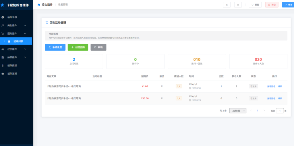 * 功能亮点: 激发用户社交裂变,快速提升网站商品销量和用户活跃度。