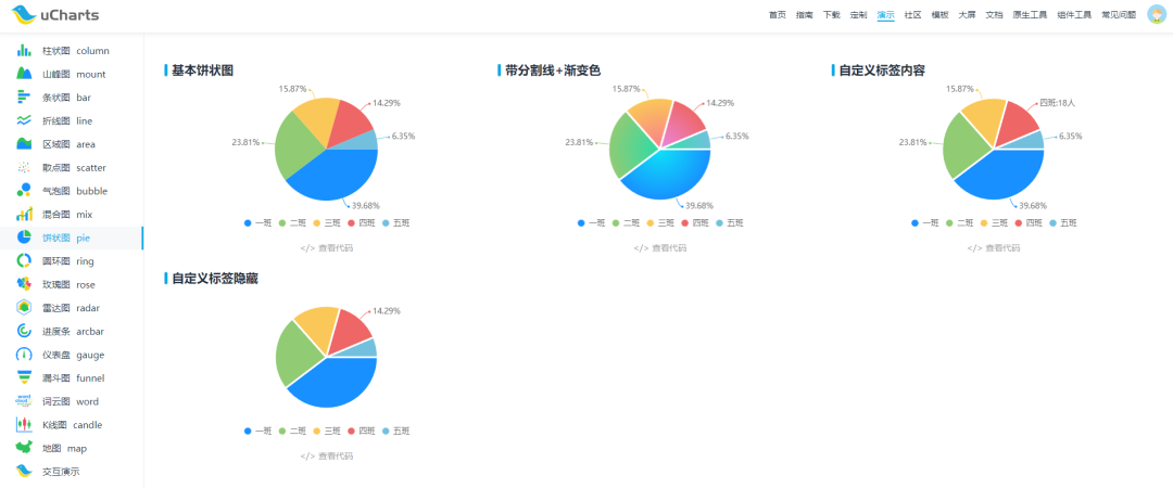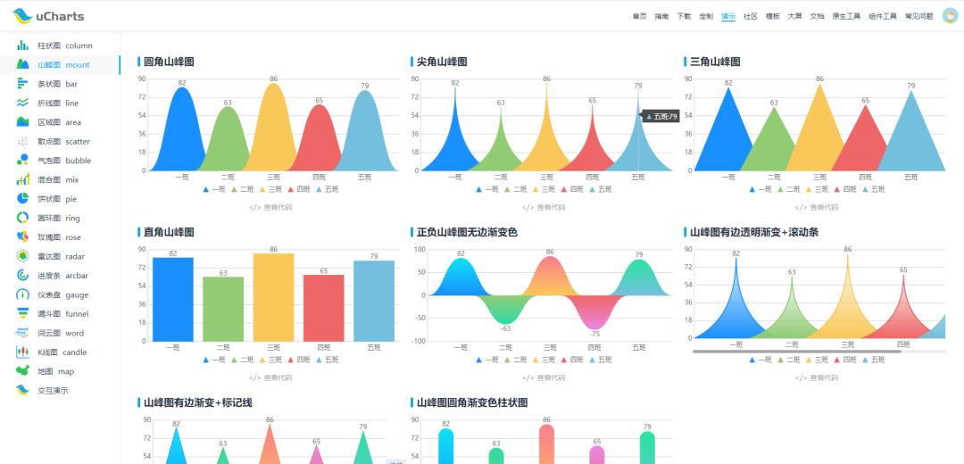 uCharts 提供了丰富的图表类型,满足各种数据可视化需求,主要功能模块包括:
