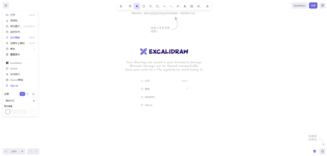 开放格式: 支持将绘图导出为 .excalidrawJSON文件,便于存储和分享。 -