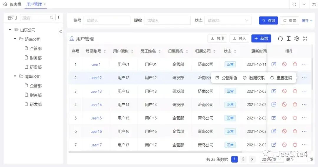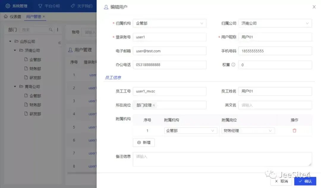 JeeSite 包含丰富的功能模块,主要包括但不限于: