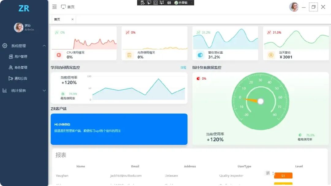 ZRCLIENT 是一个基于 Element 主题风格的 WPF 管理后台系统,采用免费开源的 GNU General Public License (GPL-2.0) 协议发布。该项目旨在提供一个美观、易用且功能丰富的管理后台解决方案,适用于各种企业级应用场景。