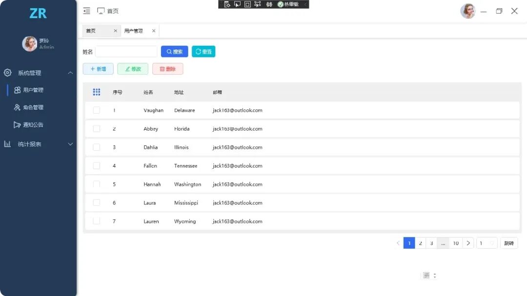 数据表格展示:支持大数据量的高效展示与分页操作。 -